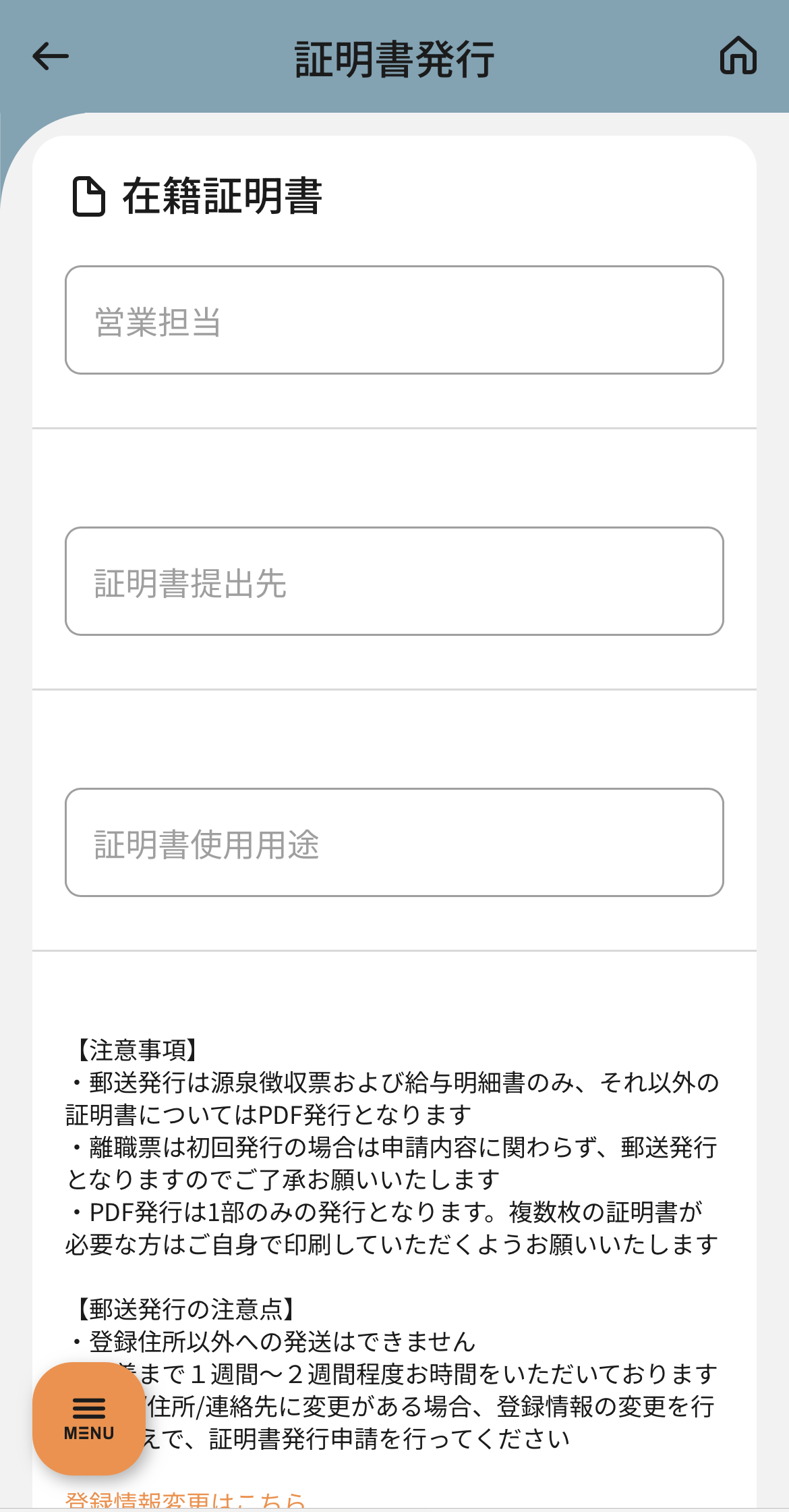 各種証明発行依頼